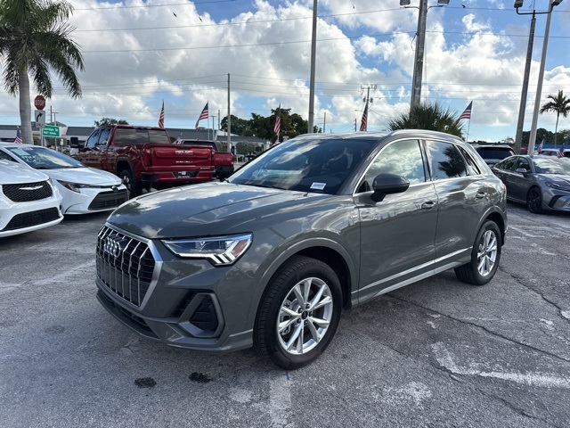 Nano Gray Metallic 2025 Audi Q3 Premium S Line quattro quattro 8-Speed Automatic with Tiptronic 2.0L 4-Cylinder TFSI BACKUP CAMERA, BLUETOOTH, LEATHER, MOONROOF, POWER PACKAGE, 4-Wheel Disc Brakes, ABS brakes, Dual front impact airbags, Dual front side impact airbags, Emergency communication system: Audi connect CARE, Front anti-roll bar, Knee airbag, Low tire pressure warning, Occupant sensing airbag, Overhead airbag, Power Liftgate, Power moonroof: Panoramic, Rear anti-roll bar.