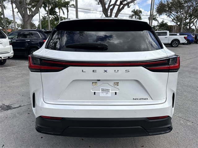 2025 Lexus NX 250 Base White Recent Arrival! !!!*** HURRY ***!!!, *!*!*! DON'T MISS OUT !*!*!*, ** BEST COLOR COMBINATION **, 10 Speakers, 4-Wheel Disc Brakes, ABS brakes, Air Conditioning, Alloy wheels, AM/FM radio: SiriusXM, Auto High-beam Headlights, Auto-dimming door mirrors, Auto-dimming Rear-View mirror, Automatic temperature control, Brake assist, Bumpers: body-color, Delay-off headlights, Driver door bin, Driver vanity mirror, Dual front impact airbags, Dual front side impact airbags, Electronic Stability Control, Emergency communication system: Safety Connect (up to 10-year trial subscription included), Exterior Parking Camera Rear, Four wheel independent suspension, Front anti-roll bar, Front Bucket Seats, Front Center Armrest, Front dual zone A/C, Front fog lights, Front reading lights, Fully automatic headlights, Garage door transmitter: HomeLink, Heated door mirrors, Heated Front Bucket Seats, Heated front seats, Illuminated entry, Knee airbag, Leather Shift Knob, Leather steering wheel, Low tire pressure warning, Navigation system: Drive Connect Cloud Navigation (subscription required), NuLuxe Seat Trim, Occupant sensing airbag, Outside temperature display, Overhead airbag, Overhead console, Panic alarm, Passenger door bin, Passenger vanity mirror, Power door mirrors, Power driver seat, Power Liftgate, Power passenger seat, Power steering, Power windows, Premium Paint (PJ), Quick Charging Cables-Mobile, Radio data system, Radio: 10-Speaker Lexus Premium Sound, Rain sensing wipers, Rear anti-roll bar, Rear reading lights, Rear seat center armrest, Rear window defroster, Rear window wiper, Remote keyless entry, Security system, Speed control, Speed-sensing steering, Speed-Sensitive Wipers, Split folding rear seat, Spoiler, Steering wheel mounted audio controls, Tachometer, Telescoping steering wheel, Tilt steering wheel, Towing Package (2000 lbs), Traction control, Trip computer, Turn signal indicator mirrors, Variably intermittent wipers, Wheels: 18" Alloy w/Dark Gray Met & Machined Finish, Wireless Apple CarPlay/Wireless Android Auto, Wireless Phone Charger. CARFAX One-Owner. Clean CARFAX.