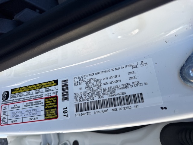 Ice 2026 Toyota Tacoma Limited 4WD 8-Speed Automatic 2.4L 4-Cylinder BACKUP CAMERA, BLUETOOTH, LEATHER, MOONROOF, NAVIGATION, POWER PACKAGE, 4WD, 4-Wheel Disc Brakes, ABS brakes, Anti-whiplash front head restraints, Dual front impact airbags, Dual front side impact airbags, Emergency communication system: Safety Connect (up to 10-year trial subscription), Front anti-roll bar, Knee airbag, Low tire pressure warning, Navigation system: Drive Connect Cloud Navigation (1-year trial subscription), Occupant sensing airbag, Overhead airbag, Power moonroof.